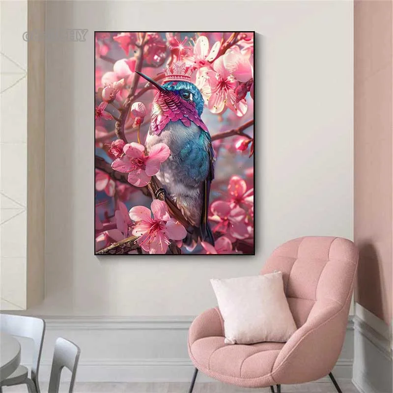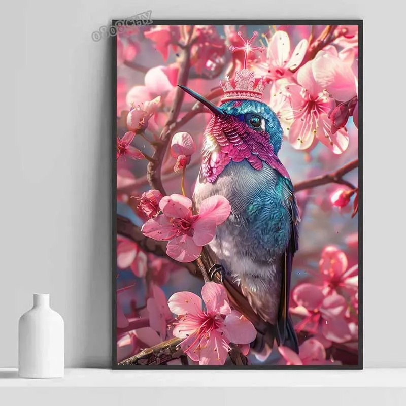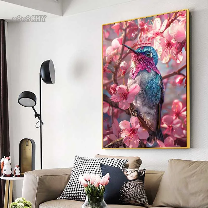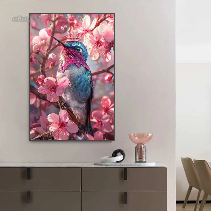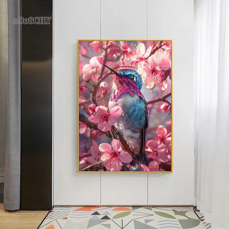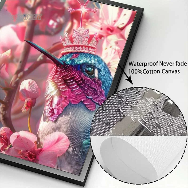Hummingbird with Crown Flowers Canvas Painting HD Prints Poster Modern Beautiful Bird Wall Art Pictures for Home Decoration